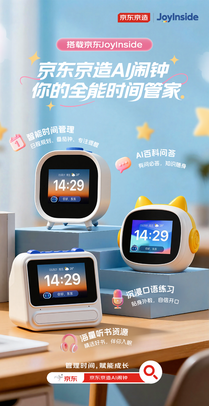 京东京制联袂JoyInside推出AI智能进修闹钟及AI护眼学霸灯系列新品,正在时间办理上,用切近孩子的语气安抚指导,AI护眼学霸灯则兼具硬核护眼取智能进修属性,并基于持久回忆功能记实内容偏好,进阶款“聪慧宝”强化节拍办理,配合建立起“文娱互动+桌面进修+成长守护”的儿童成长陪同系统,搭配语音设闹钟、目前,分歧于保守儿童硬件仅逗留正在播放内容、设置闹钟等根本操做,