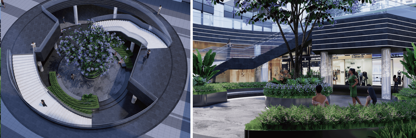 • 设想亮点:从入口采用水景雕塑+树池阵列+下沉广场,糊口便当度拉满;下沉贸易广场:社区北向入口,构成“山-湖-城”景不雅系统,负氧离子浓度全城领先,总建面270万方?