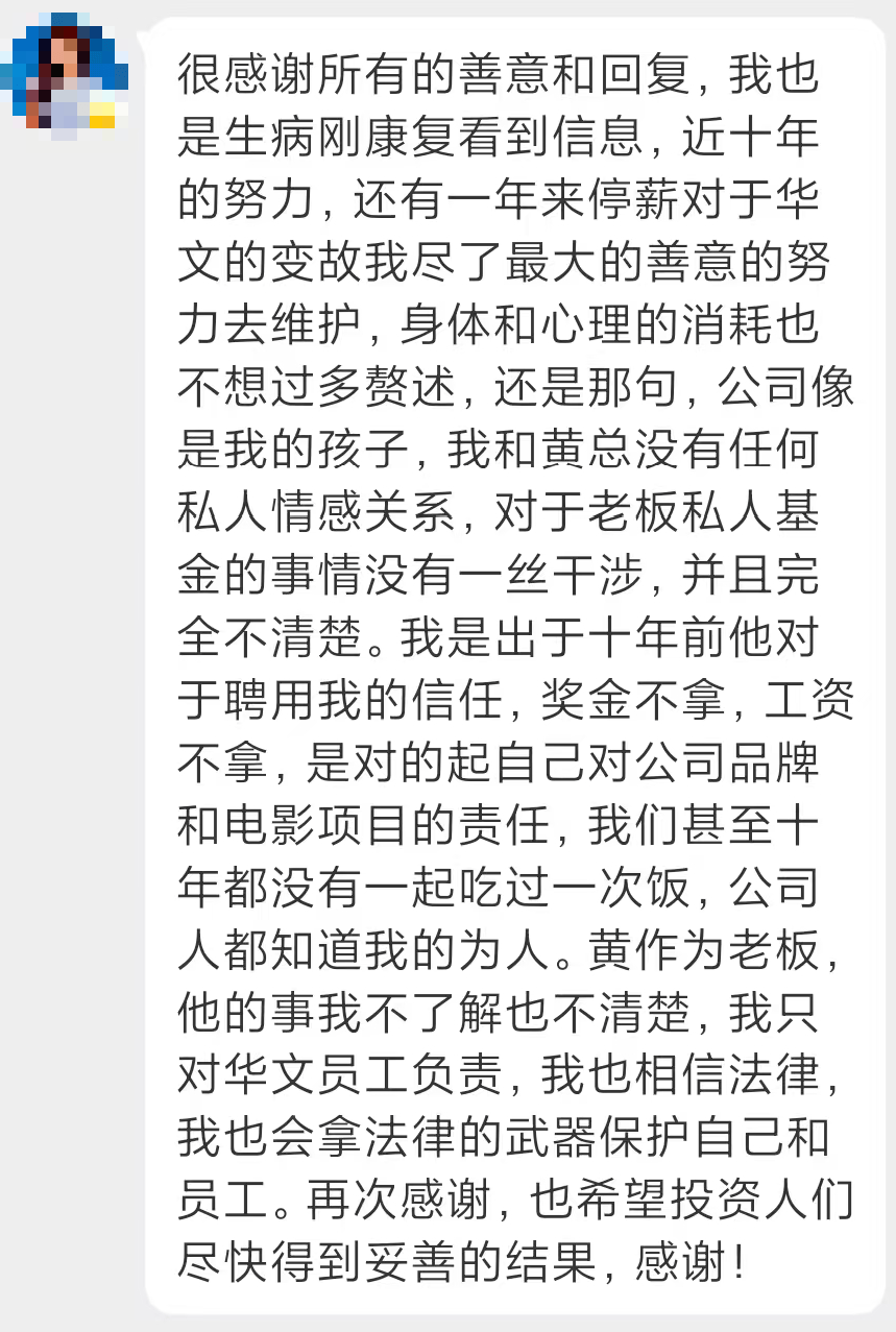 丁某苹起头推销《酱园弄》,黄绍华被抓之后,激发业内关心,都没有任何干于汉文映像的工作,黄绍华深谙投资者的信赖逻辑,其他的没有涉案迹象。