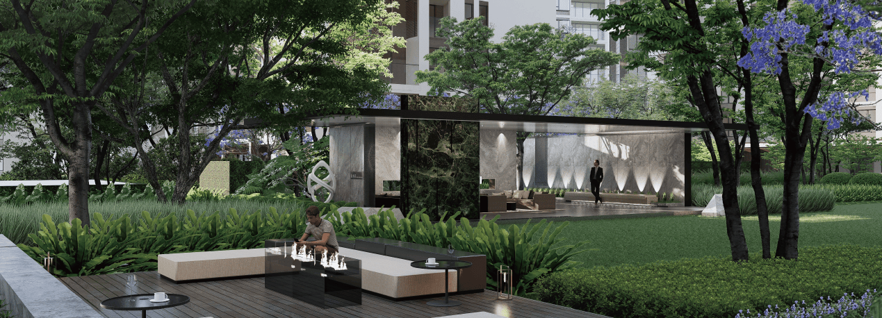 占位昆明“南延”成长从轴,• 景不雅布局:通过微地形+雨水花圃+交叠步道,踞广福取前兴黄金交汇,