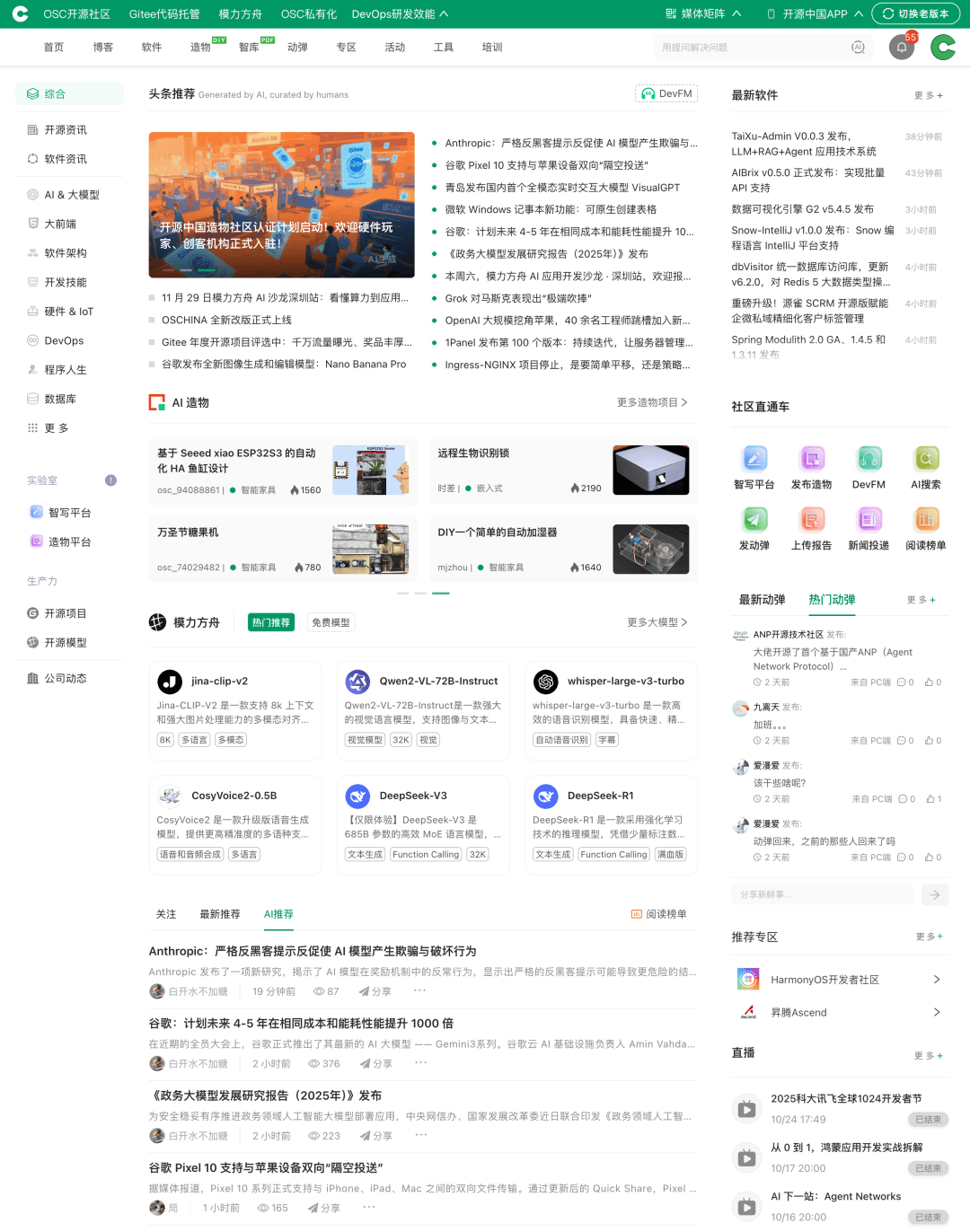 新版首页上线了由开源中国社区 AI 保举算法供给支撑的「AI 保举」功能。平台通过深度整合开源软硬件资本取智能化东西,去接管查验、收成赞誉,社区通过毗连 AI 能力供应商、智能硬件供应商及供应链厂商,