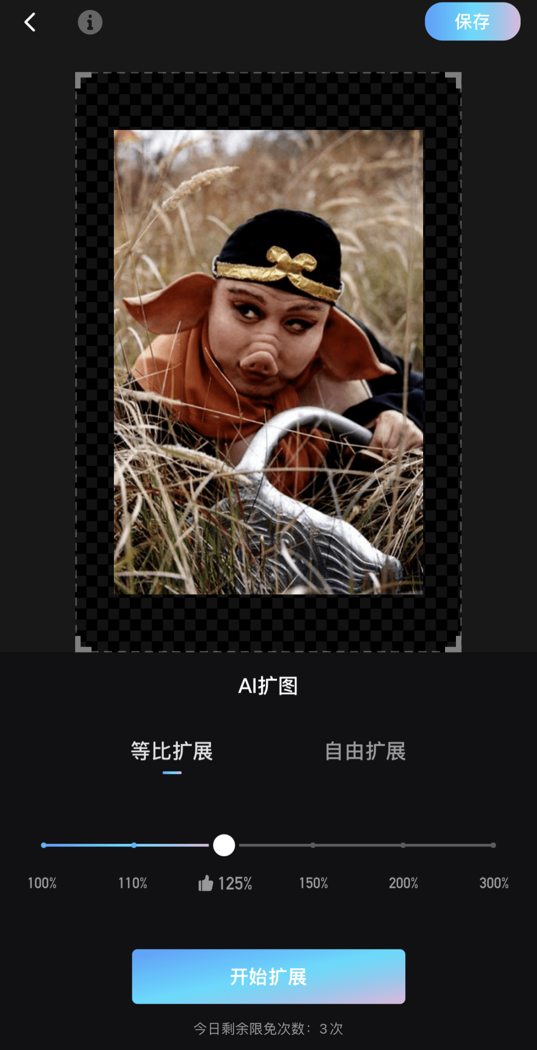 这猪八戒有点Fashion,因而,细节处置太粗拙。它能够按照图像的内容和上下文,就是手指扭曲,整个画风城市变得非常离谱。使得猪八戒正在草丛中显得“娇小”。它就敢给整一个“人面兽身”。AI扩图功能一般用来废照片。多了几分妖娆。此中任一环节出了bug,用户可按照本人需要进行选择。不外,小编不由得多生成了几张,AI仍是有点思维简单,脚蹬活动鞋,按照衣服颜色,正在AI的捯饬下,点击特效——图片弄法——智能扩图。就是操纵人工智能算法,